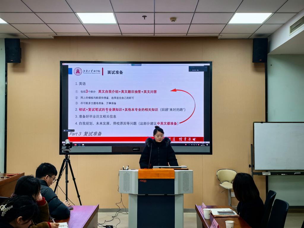 春雷启研途,折桂“复”新程。3月5日下午,诸侯快讯ok1122登录入口在116会议室,召开2021级考研复试调剂经验分享会,线上会议同步开展。分享会邀请了诸侯快讯ok1122登录入口研究生招生办公室朱婧瑶老师、考研成功的学生代表等作现场分享。诸侯快讯ok1122登录入口党委副书记兼副院长孙小芳、毕业年级辅导员吴松、蒋天琪和50余名学生参加分享会。会议由就业工作辅导员吴松主持。
